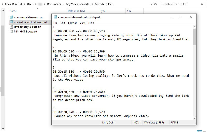 The two methods introduced in the previous can help you find almost any subtitle you want, but it doesn’t exclude the possibility that you can never find the right subtitle. In this case, another feature of Any Video Converter, Speech to Text tool, may help you. This tool automatically recognizes audio and supports exporting subtitle files in multiple formats. We recommend that you customize the Workflow to combine video downloading, adding subtitles, and speech-to-text in one stop.