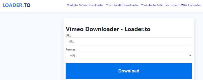 Loader.to provides an online Vimeo video downloader as well as an Android application for mobile devices. You can use this Vimeo downloader to download videos in various resolutions, ranging from as low as 360p to as high as 8K. Additionally, it enables you to separately save audio files in multiple formats, such as WAV and AAC.