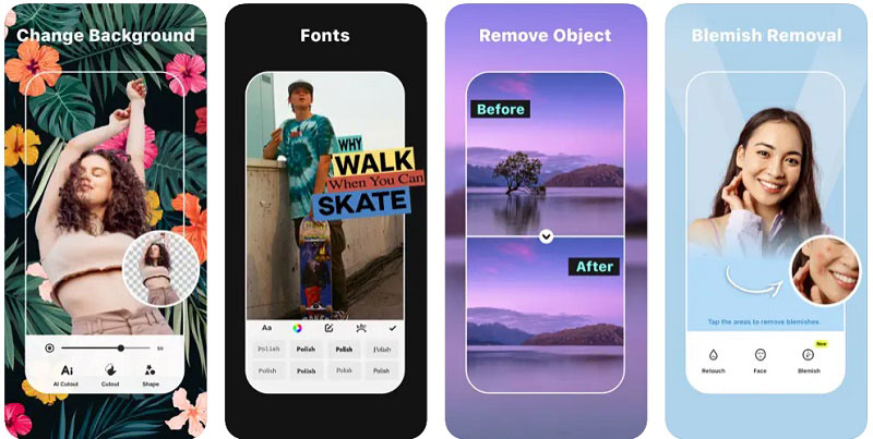 Photo Editor Pro-Polish is the highest-rated of the recommended apps, with a rating of 4.9 in Google Play and 4.8 in the App Store. It is a comprehensive tool for editing photos that offers a wide array of features. You can use it to erase the background, make collages, attach stickers, and apply effects, filters, and presets quickly. If you want to turn your face into an anime character, you can use the cartoon photo filter to create a unique look with the help of our AI face changer and you can post your artwork on social media with no watermark and in high quality.